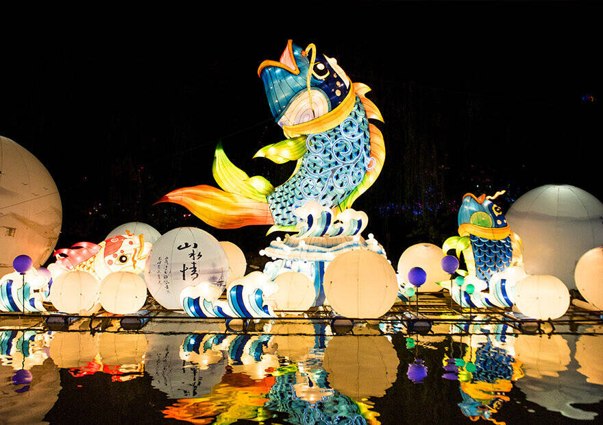 不只在淄博,辛棄疾筆下的上元盛會(huì),在山東的各地的花燈會(huì)統(tǒng)統(tǒng)都可以找到。濟(jì)南舉辦第四十四屆天下第一泉迎春花燈會(huì),在趵突泉、大明湖、五龍?zhí)毒皡^(qū)分別打造“趕燈季”、“煙雨湖”、“漫時(shí)光”三大主題區(qū)域,并以護(hù)城河為串聯(lián),將如詩(shī)如畫的氣象打造成了一場(chǎng)視覺盛宴;青島新春藝術(shù)彩燈節(jié),創(chuàng)新融合彩燈與光影藝術(shù),展現(xiàn)歷史與現(xiàn)代、傳統(tǒng)與時(shí)尚的完美交融,為市民游客呈現(xiàn)一幅“燈在城中畫,人在畫中游”的絕美燈光畫卷;濱州黃河樓景區(qū)舉辦的“非遺千燈會(huì)”,吸引了眾多市民和游客前往打卡。燈會(huì)以全新的聲光電技術(shù)以及巧妙布置,打造出與眾不同的沉浸式花燈藝術(shù)展,并且配套非遺演出、篝火晚會(huì)、雜技噴火、非遺打鐵花等豐富多彩的節(jié)目,呈現(xiàn)了一臺(tái)熱熱鬧鬧的非遺盛會(huì)……