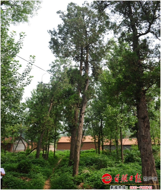 日照新聞網(wǎng)訊 東港區(qū)三莊鎮(zhèn)陳家店村內(nèi)側(cè)柏,樹齡200年,樹高6.5米,胸圍118厘米,冠幅4.75米,東西冠幅4.7米,南北冠幅4.8米。