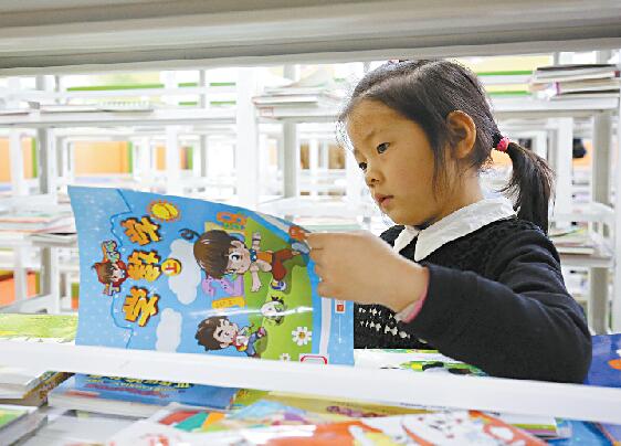 2月13日,小朋友在市圖書館少兒閱讀區內閱讀書籍。