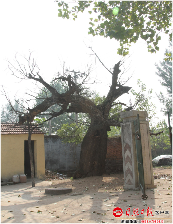 莒縣庫山鄉大福照村內大街國槐,樹齡700年,樹高15米,胸圍320厘米,冠幅9米,東西冠幅9米,南北冠幅9米。