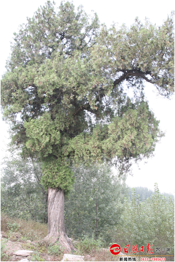 日照新聞網訊 莒縣庫山鄉大福照村內大街側柏,樹齡700年,樹高12米,胸圍280厘米,冠幅5.5米,東西冠幅5米,南北冠幅6米。