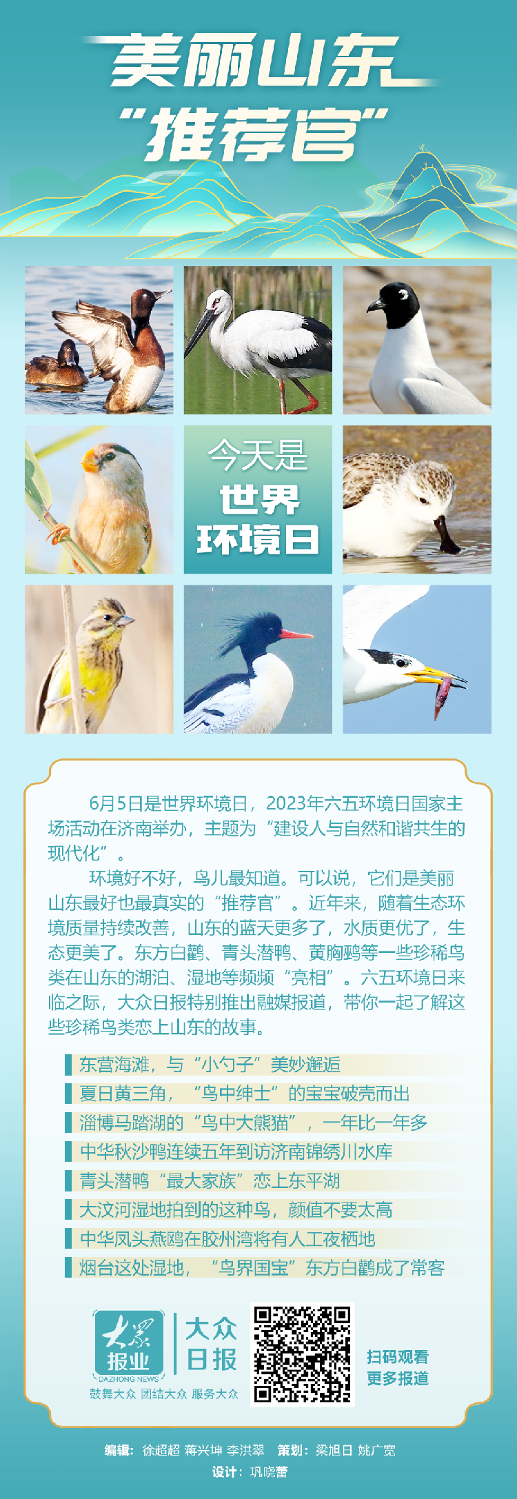 環境好不好,鳥兒最知道。可以說,它們是美麗山東最好也最真實的“推薦官”。近年來,隨著生態環境質量持續改善,山東的藍天更多了,水質更優了,生態更美了。東方白鸛、青頭潛鴨、黃胸鹀等一些珍稀鳥類在山東的湖泊、濕地等頻頻“亮相”。