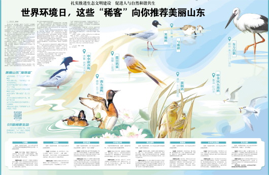 如今在山東,人鳥共繪四時(shí)美景:春天青頭潛鴨在東平湖等你相會,夏日有中華鳳頭燕鷗在膠州灣向你發(fā)出邀約,秋季黃河入海口飛過漫天的鳥浪,冬季正是到榮成看天鵝的大好時(shí)節(jié)。與自然為鄰,與鳥兒為伴,齊魯大地上,每個(gè)人都是自然的守護(hù)者,共同點(diǎn)亮人與自然和諧共生的美好未來。