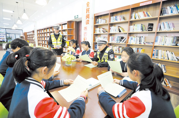 為迎接世界讀書日的到來,倡導(dǎo)全民閱讀,建設(shè)書香日照,4月22日,日照市港航公安局交警大隊組織民警深入金海岸中學(xué)開展豐富多彩的讀書日宣傳教育活動。