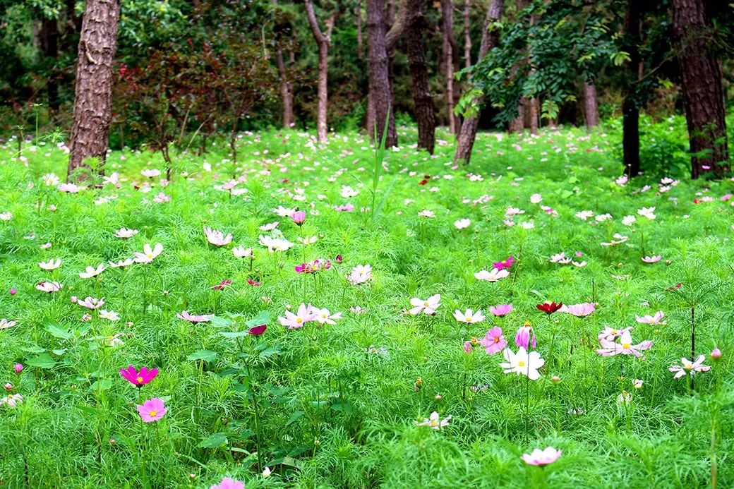 波斯菊花海傾情綻放 日照海濱國家森林公園大片波斯菊