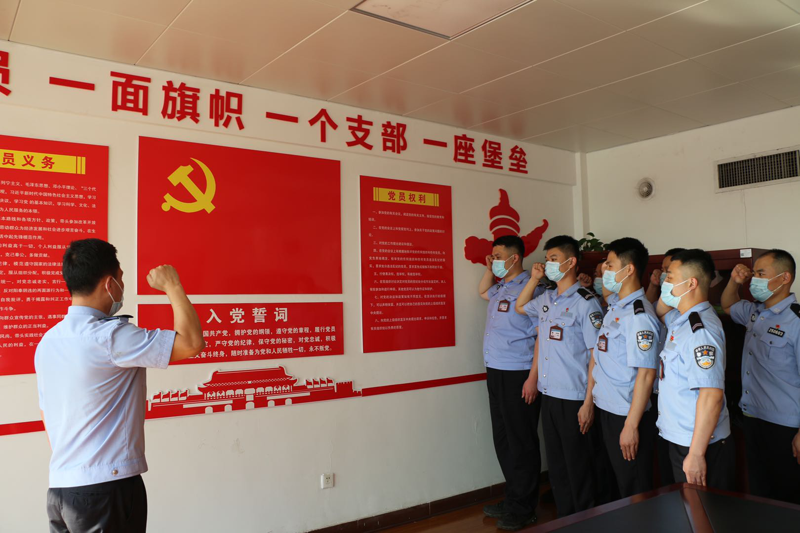 每天8:30時,都會召開工作交班會,認真總結上班工作情況,傳達上級重要指示精神,部署當天勤務重點。