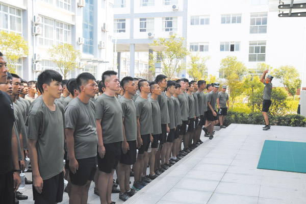 8月24日,在東港區新兵役前教育訓練場,來自東港區和山海天旅游度假區的共計480余名預定新兵參加訓練。