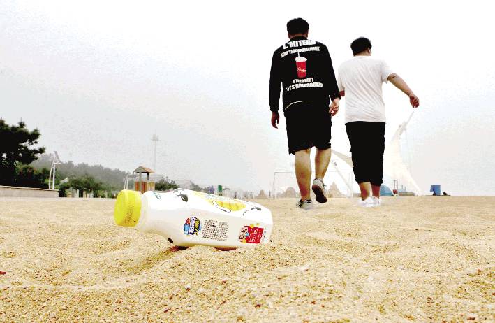 8月15日,游客將喝完的飲料瓶隨手丟棄在景區的沙灘上。 夏季,是我市的旅游旺季,不少游客來到我市避暑旅游、欣賞美景。同時,一些不文明行為的出現,不僅影響了文明旅游形象,還帶來了一定的安全隱患。我們呼吁,別讓不文明行為給旅游好心情添堵,文明旅游從你我開始。 (本報記者 曹鈺迪 攝)