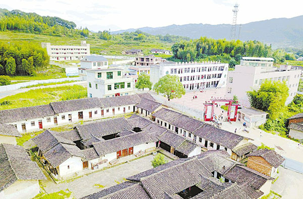 這是航拍的長汀縣南山中復小學全景(6月18日攝) 長汀縣南山中復小學坐落在“紅軍長征第一村”——— 福建省長汀縣中復村,與紅軍長征出發地之一觀壽公祠比鄰相守。1934年9月30日,紅九軍團在中復村觀壽公祠前舉行誓師大會,開始了二萬五千里長征。多年來,長汀縣南山中復小學堅持開展豐富的紅色文化教育活動,讓紅色文化、長征精神深深植入學生的心中。 (新華社記者 魏培全 攝)