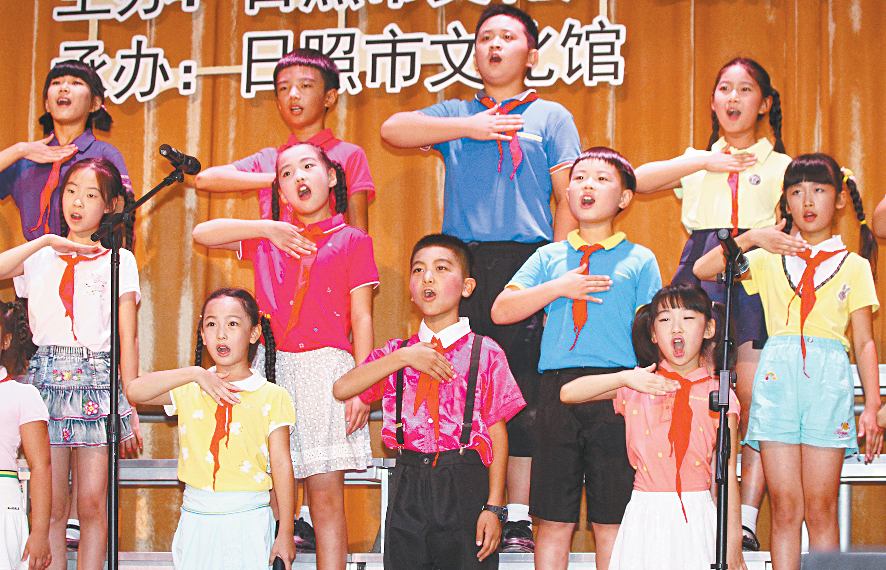9月1日,市文化館童聲合唱團(tuán)演唱《長城謠》。 當(dāng)日,市文化館舉辦“紀(jì)念中國人民抗日戰(zhàn)爭暨世界反法西斯戰(zhàn)爭勝利70周年”文藝晚會,來自各社區(qū)、街道的群眾,以合唱、歌舞劇、詩朗誦等形式,重溫抗戰(zhàn)歷史,緬懷革命先輩。 (記者 李青 攝)