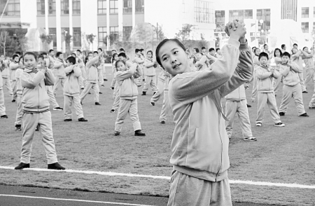 12月4日,浮來春小學(xué)的小學(xué)生正在進(jìn)行廣播體操會(huì)操比賽。12月2日至4日,東港區(qū)教育局舉辦全區(qū)“2015年第三套中小學(xué)生廣播體操會(huì)操比賽”,全區(qū)36所中小學(xué)校