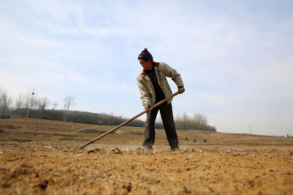 3月15日,一位農民在東港區后村鎮田地里勞作。