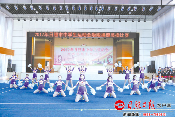 4月27日,2017年全市中學生運動會啦啦操健美操比賽在日照師范學校舉行。時尚動感、充滿活力的參賽隊員們,通過精彩的表演,展現出廣大中學生良好的團隊精神和昂揚的精神風貌。 (記者 田文佼 攝)