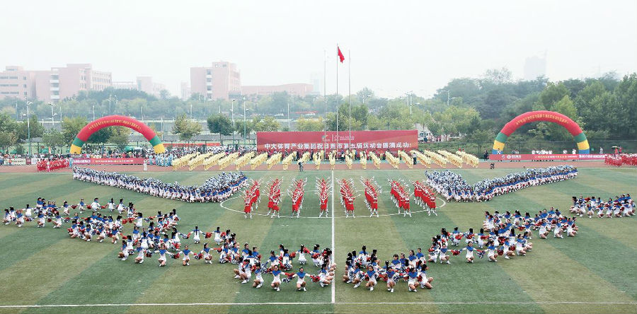 9月19日,日照師范學校學生在開幕式上表演大型團體操《夢想起航》。