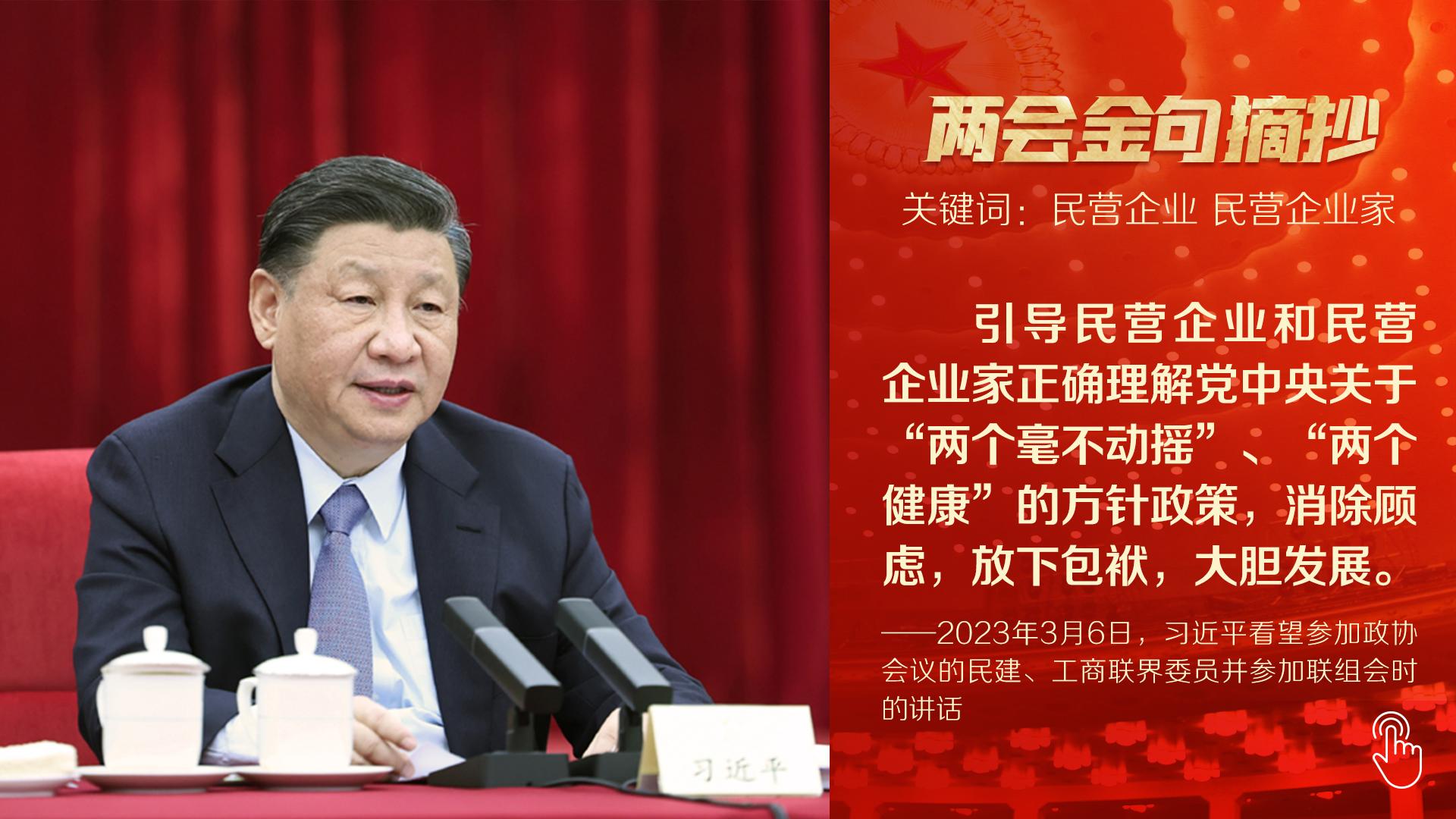 “高質量發展是全面建設社會主義現代化國家的首要任務。”今年兩會首次到團組,總書記以高質量發展為題,詳細闡述中國未來施政發力點。第二天參加民建、工商聯界委員聯組會,他又就正確引導民營經濟健康發展、高質量發展作出重要論述,一句“要堅守主業、做強實業,自覺走高質量發展路子”為全國4700多萬家民營企業指明方向。十四屆全國人大一次會議閉幕會上,總書記再次向世界宣示:在強國建設、民族復興的新征程,我們要堅定不移推動高質量發展。