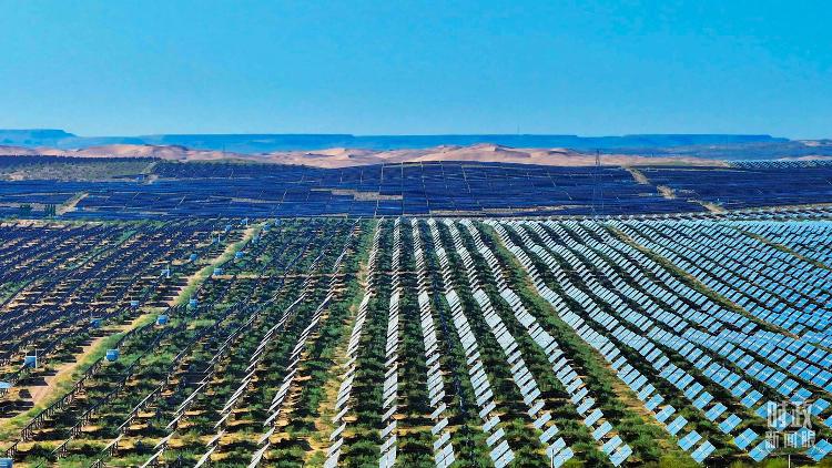 △內(nèi)蒙古鄂爾多斯,庫(kù)布其沙漠新能源基地。(圖/視覺(jué)中國(guó))