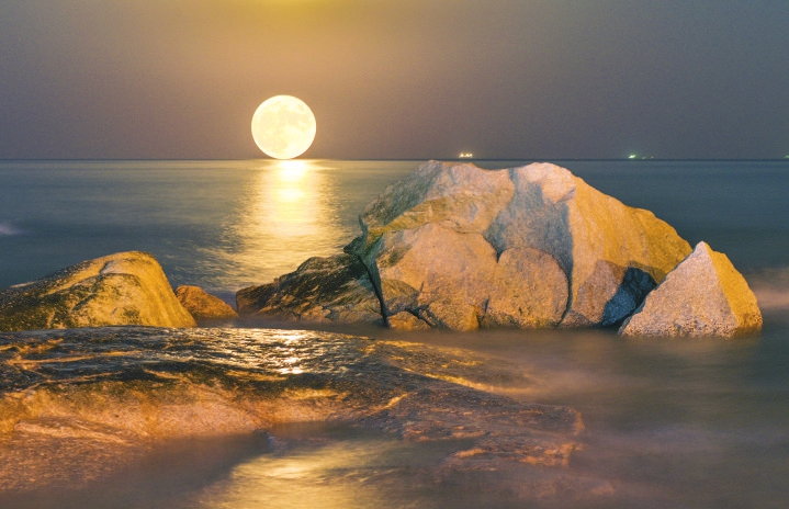 9月21日,在日照燈塔廣場,一輪明月與大海交相輝映。當日是中國傳統節日中秋節,也是一年中最有詩意的時節。(日照報業全媒體記者 李青 通訊員 周家平 報道)
