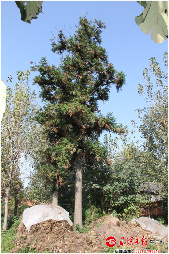 日照新聞網訊 東港區西湖鎮響水河村內杉木,樹齡210年,樹高18米,胸圍128厘米,冠幅5.2米,東西冠幅6.2米,南北冠幅4.2米。學名Cunninghamia lanceolata (Lamb.)Hook,科屬杉科杉木屬,別名沙木、沙樹。