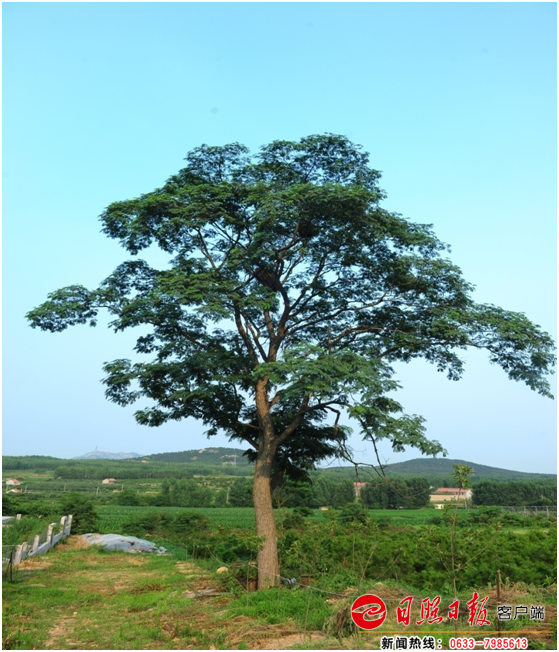 日照新聞網訊 東港區日照街道大桃園村西南合歡,樹齡110年,樹高19.5米,胸圍163.4厘米,冠幅13.05米,東西冠幅13.1米,南北冠幅13米。學名Albizia julibrissin Durazz,科屬豆科合歡屬,別名絨花樹,馬纓花。