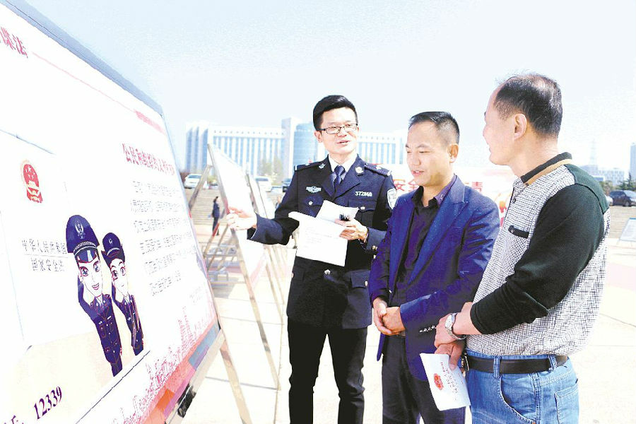 4月14日,在市人民廣場(市政府廣場),市國家安全局的工作人員為市民講解《國家安全法》的相關知識。 當日,日照市2017年度“全民國家安全教育日”教育宣傳活動在日照市政府廣場舉行。該活動由日照市國家安全領導小組辦公室組織實施,市委保密局、市公安局、日照檢驗檢疫局、市國家安全局等四家單位參與。本次活動主題是“以人民的安全為宗旨”。據了解,每年4月15日為“全民國家安全教育日”。