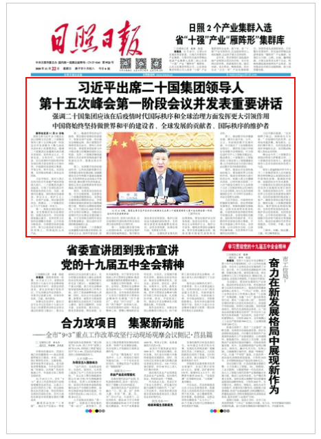習近平強調,二十國集團應該遵循共商共建共享原則,堅持多邊主義,堅持開放包容,堅持互利合作,堅持與時俱進,在后疫情時代國際秩序和全球治理方面發揮更大引領作用。