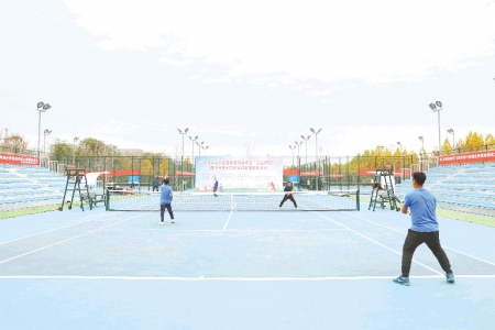 為推進全民健身理念深入人心,11月17日,2018年第八屆全民健身運動會“莒縣城投杯”暨日照市第十四屆全民健身網球大賽在莒縣拉開帷幕,吸引了全省16支球隊的65名運動員參賽。 (本報通訊員 王正茂 劉孟來 攝)