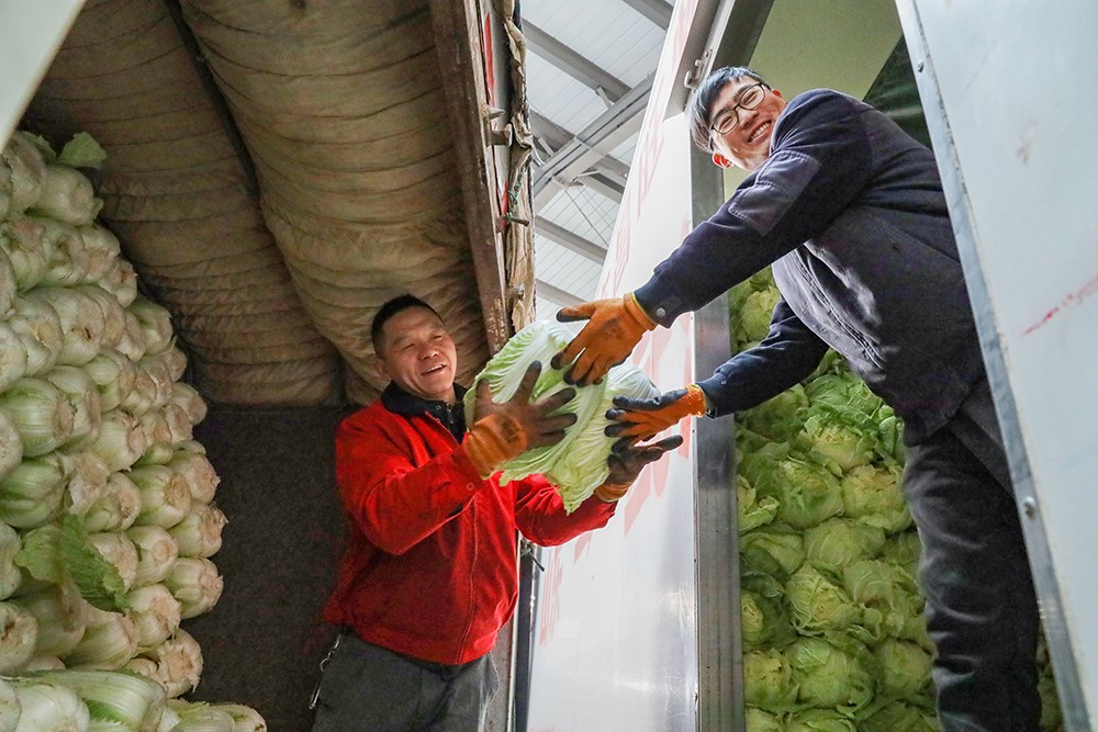 2月17日,在日照高新區(qū)新發(fā)地農(nóng)副產(chǎn)品批發(fā)市場(chǎng),蔬菜經(jīng)營(yíng)商戶(hù)正忙著卸貨。
