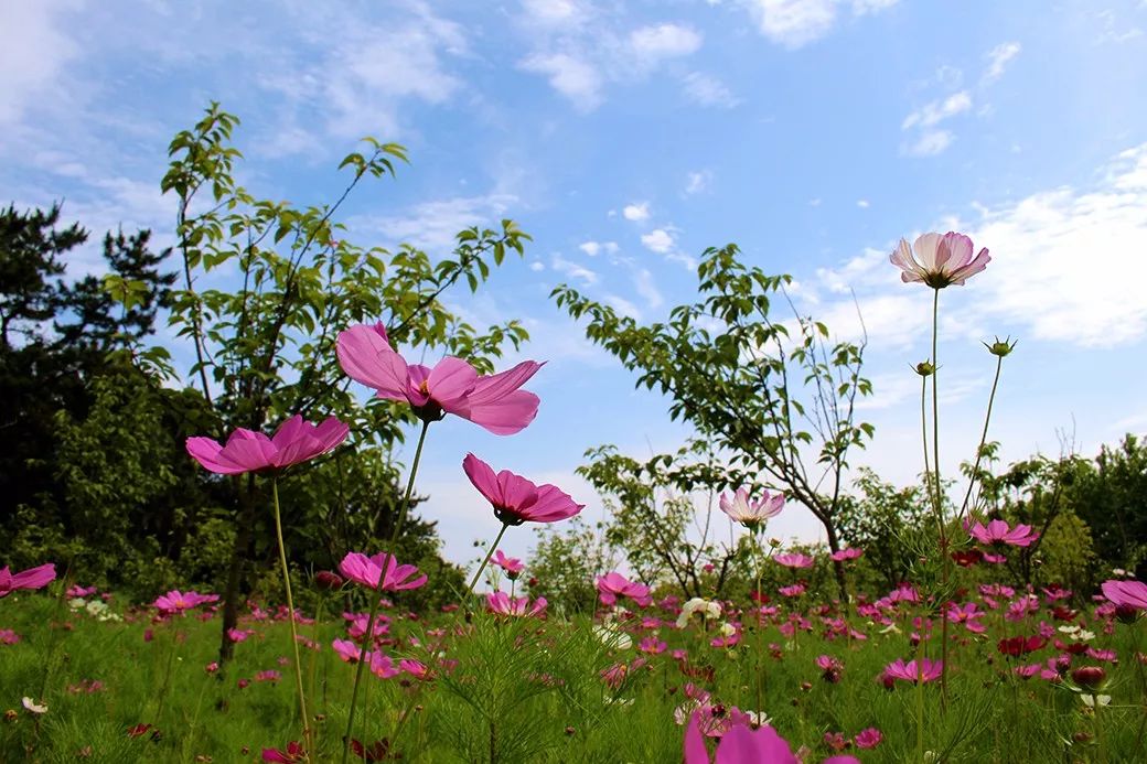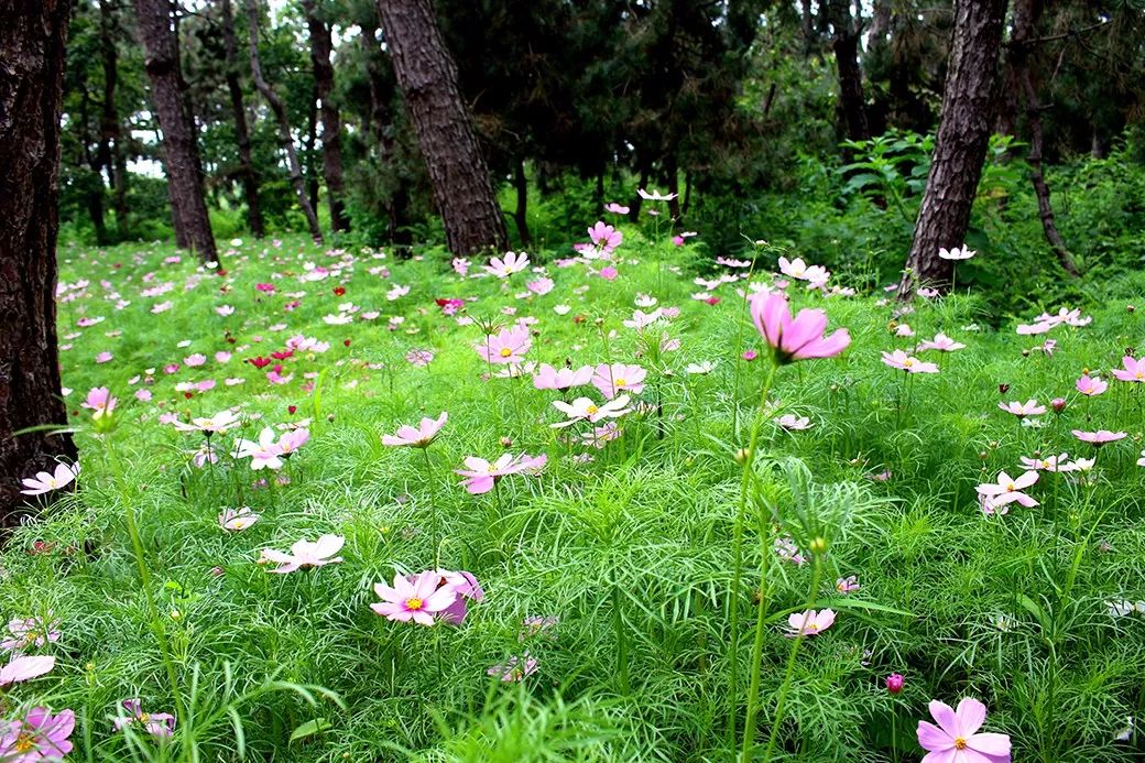 波斯菊花海傾情綻放 日照海濱國家森林公園大片波斯菊