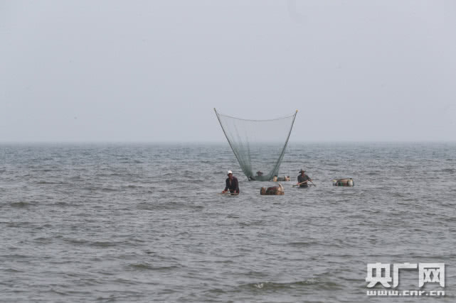 漁民們在較深的水域捕蝦。(央廣網記者 韓靖攝)