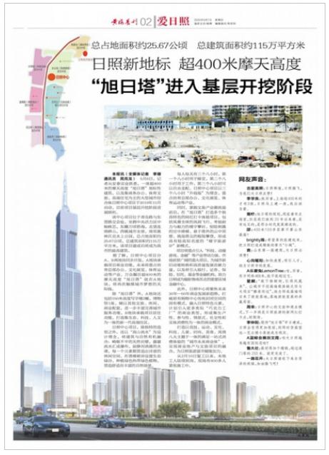 主流日照訊 5月6日,記者從安泰實業(yè)獲悉,一座超400米的摩天高度“旭日塔”地標(biāo)性建筑,以及集商務(wù)辦公、體育文旅、高端住宅為主的大型城市綜合體日照中心項目于2019年11月啟動,目前項目基層開挖階段進展順利。