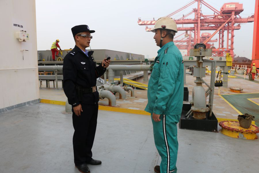 巡查中對所有在港外輪進行監管,對上下外輪的人員進行抽查,人證對照,核實身份,并認真檢查其隨身攜帶的每一件物品,查看是否有違禁品。有害、涉密的印刷品、音視頻也是打擊重點。
