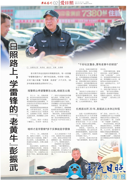 “老牛亦解韶光貴,不待揚鞭自奮蹄”。彭振武就是日照路派出所的學雷鋒老黃牛。