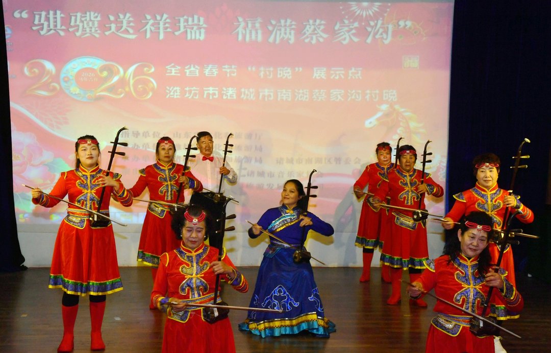 小劇場內更是座無虛席、鼓樂喧天、歡聲陣陣,2026年山東省春節“村晚”展示點諸城蔡家溝村晚在這里精彩啟幕,諸城市文藝骨干與鄉村藝術愛好者同臺演繹,將新春的美好祝福送到百姓身邊?!皫Ш⒆觼碲s年集,不僅能買年貨,還能看到這么精彩的表演,這樣的活動太有意義了。”市民葛女士表示。
