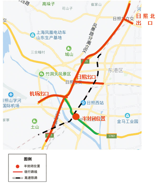 因魯南高鐵沿線路域綜合整治,對S7801疏港高速上跨魯南高鐵立交橋主跨進行橋面防水防滲施工,需要對橋梁進行半幅交替封閉施工,為保證行車安全,提醒過往車輛注意標志標牌,注意安全或繞行。
