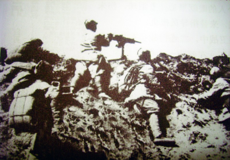 晚8時(shí),日軍憑借炮擊的煙霧和黑夜的遮掩,再次向我陣地發(fā)起強(qiáng)攻。此時(shí),二排僅剩下十幾個(gè)戰(zhàn)士。當(dāng)敵人進(jìn)至距我陣地只有10米時(shí),鐘指導(dǎo)員指揮戰(zhàn)士們,以最猛的火力抵近射擊殺傷日軍。敵人已沖入我方塹壕,由于我所占地勢(shì)優(yōu)越,又加補(bǔ)充了彈藥,沖上來的十幾個(gè)鬼子被我消滅了。中隊(duì)長中田俊郎目睹慘局,暴跳如雷,最后孤注一擲,親自上陣。當(dāng)他揮著指揮刀正要砍殺與日軍肉搏的我二排六班班長李成友時(shí),被二排長李寶貴發(fā)現(xiàn),迅疾一槍讓他見了“上帝”。接著,又殺、傷敵50余人,其余敵人見勢(shì)不好,倉皇潰退。
