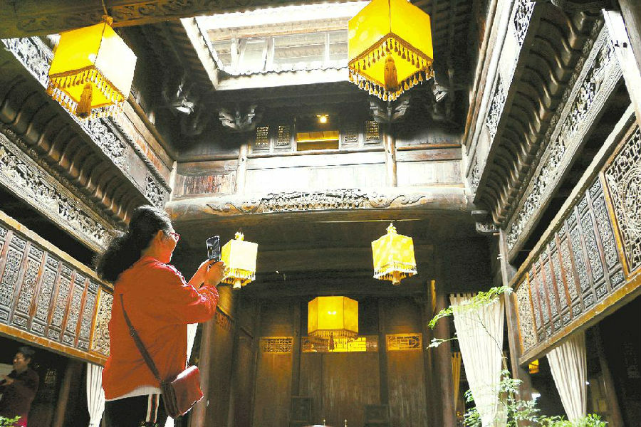 6月11日,游客在位于東港區(qū)香河街道下李家莊子村的清溪龍吟景區(qū)參觀徽派民居客棧。