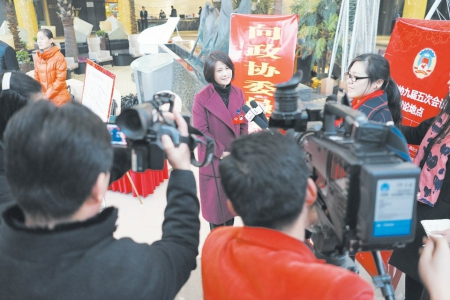 1月14日,在藍海國際大酒店,政協(xié)委員陳海文正接受媒體采訪。 當天下午,參加日照市政協(xié)九屆五次會議的委員們陸續(xù)報到。在未來的幾天里,委員們將帶著社會各界的愿望和要求,就日照的發(fā)展和百姓關心的問題積極建言獻策。(記者 冷炳豪 攝)