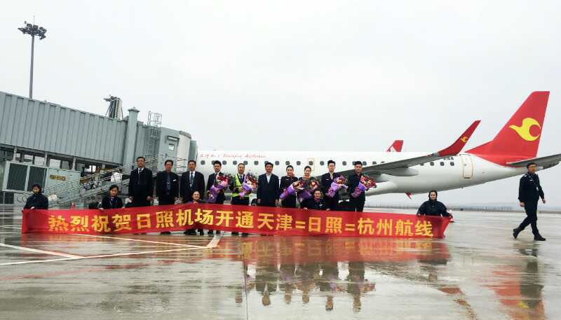 3月28日,繼開通濟南航線之后日照機場又開通了杭州=日照的航班,中午12點50分,從天津起飛的GS7867航班安全降落在日照機場。