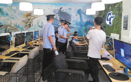 眼下正值暑期,為給廣大青少年打造一個(gè)健康文明的“綠色暑假”,東港區(qū)綜合行政執(zhí)法局對(duì)網(wǎng)吧、電影院等文化娛樂(lè)場(chǎng)所進(jìn)行嚴(yán)查嚴(yán)控,營(yíng)造暑期高壓監(jiān)管態(tài)勢(shì),保障了未成年人的身心健康和合法權(quán)益。 (本報(bào)記者 姚彩虹 通訊員 王雪凝 攝)