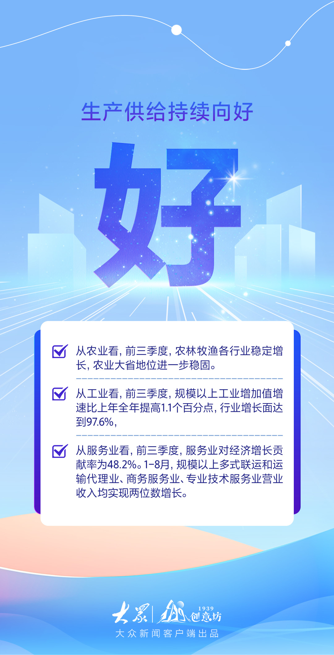 根據地區生產總值統一核算結果,前三季度全省生產總值為71981億元,按不變價格計算,同比增長5.6%。全省經濟持續保持穩健向好、進中提質的良好態勢。
