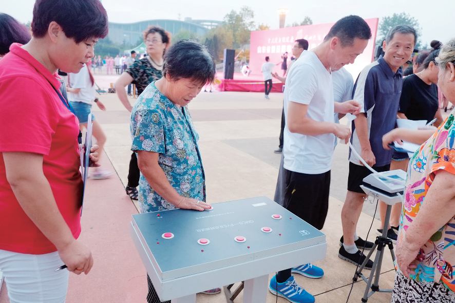 8月7日傍晚,在全民健身日啟動儀式暨全民健身志愿服務(wù)進社區(qū)體育展演進行的同時,本次全民健身日系列活動的另一項內(nèi)容——— 免費國民體質(zhì)監(jiān)測也在市政府廣場東側(cè)開展了。