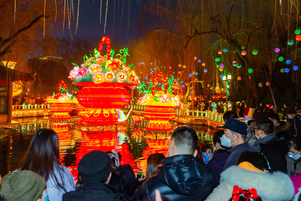 濟(jì)南天下第一泉風(fēng)景區(qū)內(nèi)各式花燈流光溢彩。(濟(jì)南市歷下區(qū)委宣傳部供圖)