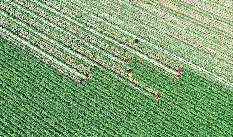 近年來,四川省南充市蓬安縣積極引導沿江群眾將荒置河灘地進行開墾改良,發展蔬菜種植業,帶動農業增效、農民增收。圖為2023年1月31日,蓬安縣錦屏鎮中壩社區沿江蔬菜種植基地里,菜農們正忙著采收蘿卜。 人民圖片 周亮/攝
